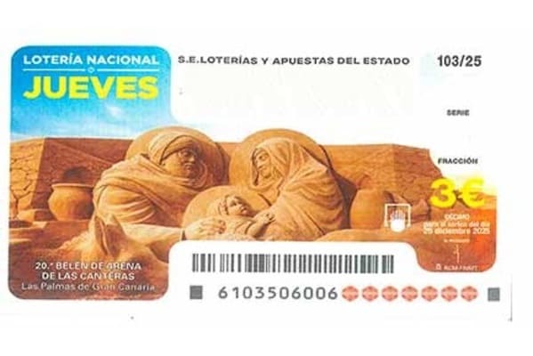 National Lottery draw with the image of the Sand Nativity Scene.